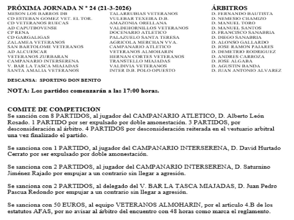 Los partidos aplazados de la jornada 19 que llegado el 28 de marzo y no habiendo notificado a AFAS la fecha de jugarlo, se jugarán el sábado 4 de abril a las 17:00 horas.