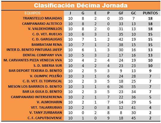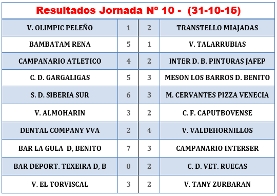 RESULTADOS Y CLASIFICACION DECIMA JORNADA