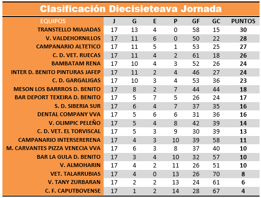 RESULTADOS Y CLASIFICACION JORNADA 17