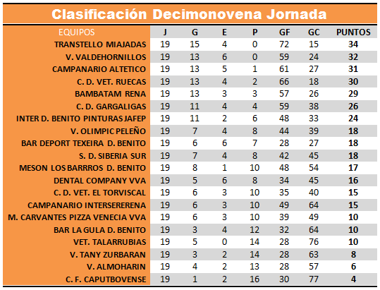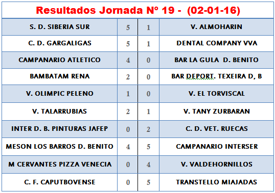 RESULTADOS Y CLASIFICACION JORNADA 19
