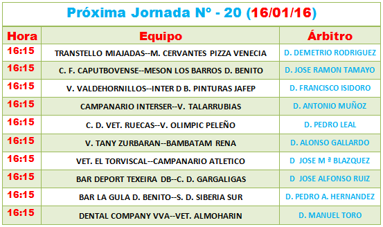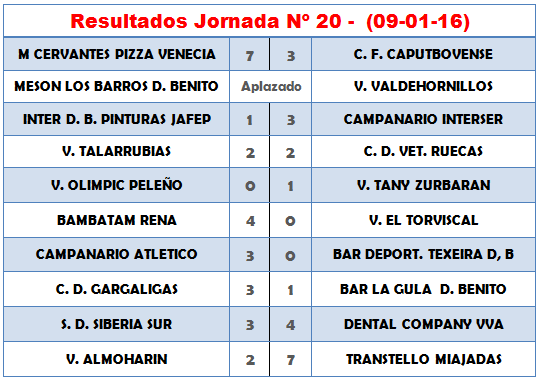 RESULTADOS Y CLASIFICACION JORNADA 20