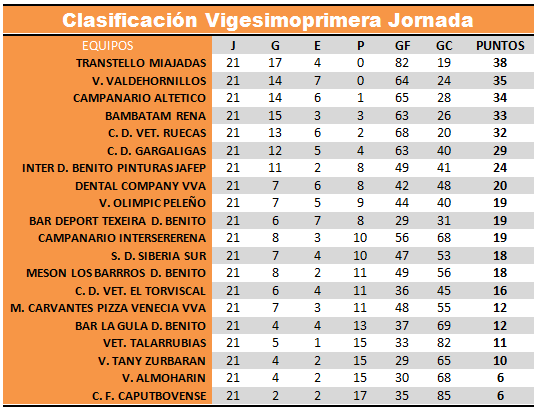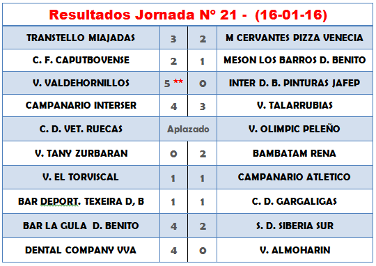 RESULTADOS Y CLASIFICACION JORNADA 21
