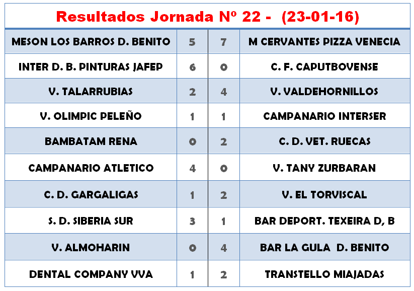RESULTADOS Y CLASIFICACION JORNADA 22