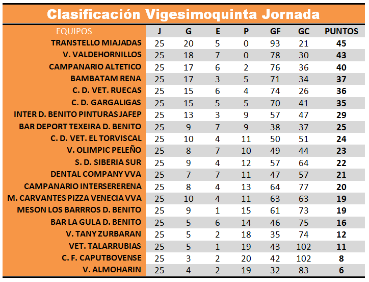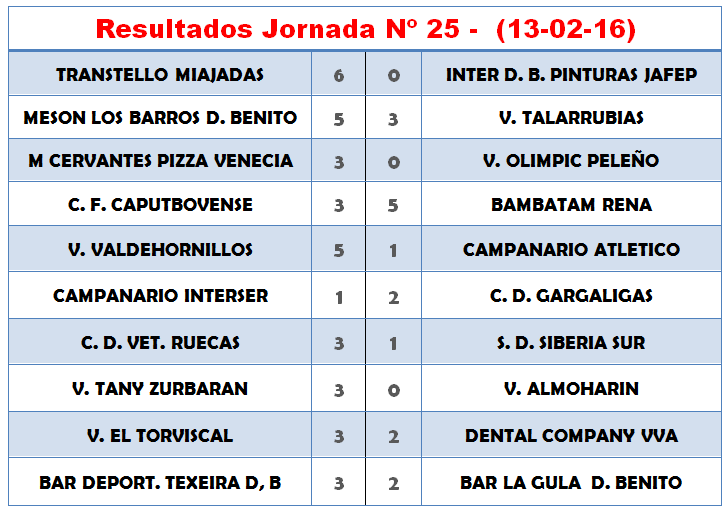 RESULTADOS Y CLASIFICACION JORNADA 25