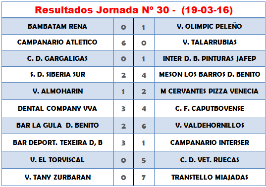 RESULTADOS Y CLASIFICACION JORNADA 30