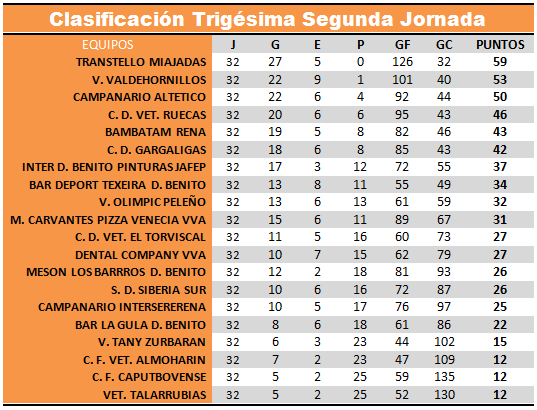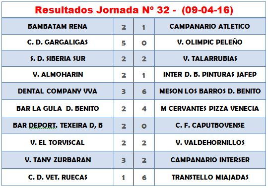 RESULTADOS Y CLASIFICACION JORNADA 32