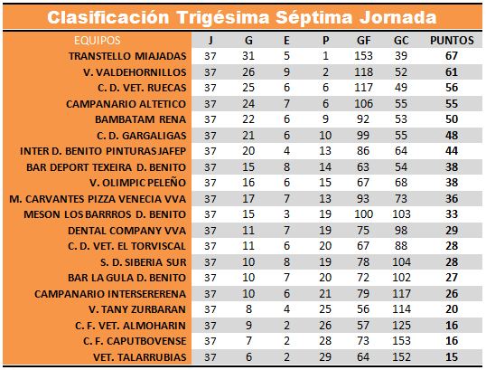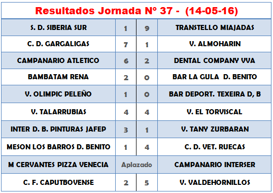 RESULTADOS Y CLASIFICACION JORNADA 37