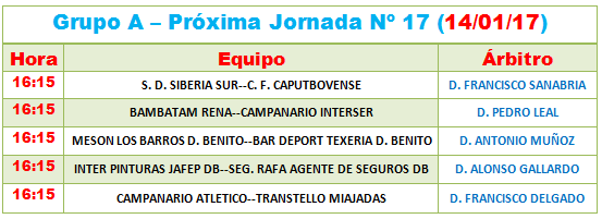 –> Todos los partidos aplazados deberán jugarse antes del día OCHO DE ENERO DE 2017. Los que no se hayan jugado a partir de esa fecha se darán por concluidos con el resultado De cero a cero y la correspondiente sanción a los equipos.