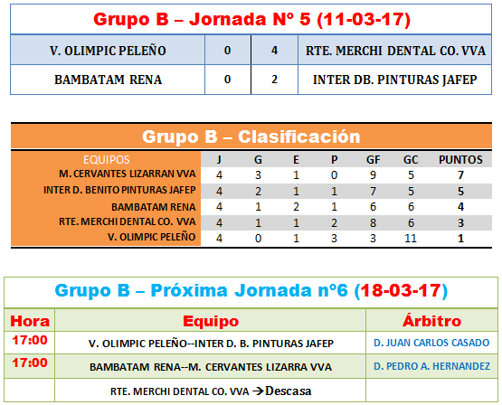 –> Se sanciona con UN partido a D. Juan Carlos Nieto Fernández del Bar Deport. Texeira D. Benito y a D. Juan Pedro Ponce Escudero del Campanario Atlético. Por acumulación de amonestaciones.