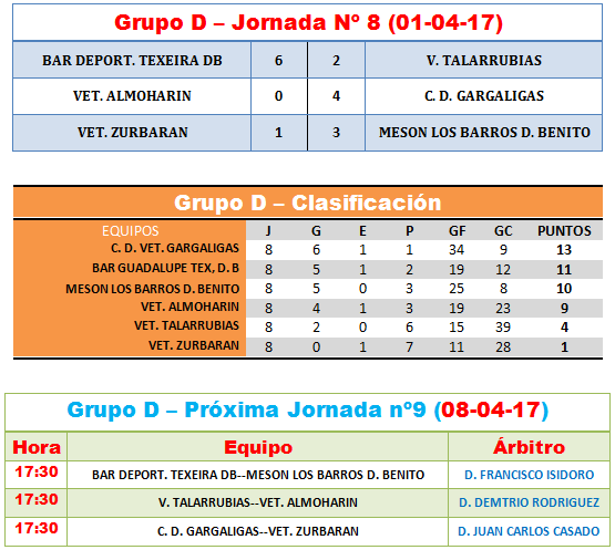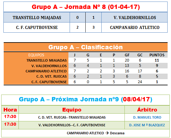 –> Se sanciona con UN partido a D. José Ventura Mora Ponce del Seg. Rafa Agente de Seguros D. Benito, a D. Juan Garrido Nieto del Vet. Almoharin, a D. Joaquín calle Ruiz del V. El Torviscal, a D. Buenaventura Godoy Moreno del Campanario Atl. A D. Pedro Antonio Pozo Murillo del C. F. Caputbovense y a D. Pablo Tercero Pulgar del V. Valdehornillos. Todos Por acumulación de amonestaciones.