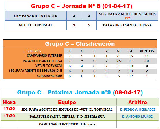 –> *** Se sanciona a Seg. Rafa Agente de Seguros D. Benito, con la perdida del partido contra el Campanario Interser, por negarse a pagar el recibo arbitral y además se le sanciona con una multa de 30 € que deberá abonar antes de el día 12 de Abril. Quedando expulsado de la AFAS si no hubiese pagado transcurrida dicha fecha. (Articulo 5 Apartado (a) del reglamento AFAS)