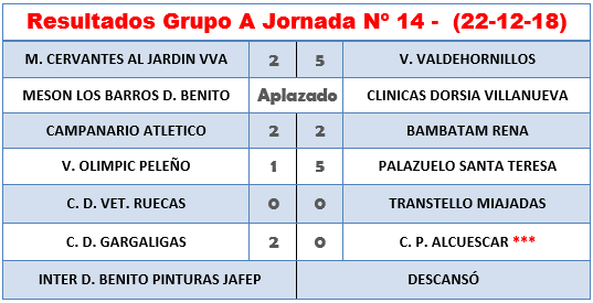 ——>RESULTADOS JORNADA 14 GRUPO A<——-