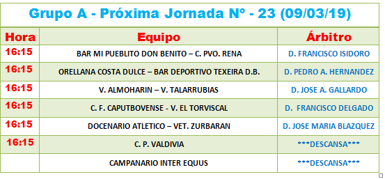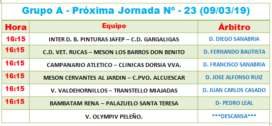 Se sanciona con UN partido a D. Javier Carrasco Sánchez y D. Roberto Cantero Moreno del Transtello Miajadas, a D. Antonio Maria Cano Blanco y a D. José Antonio Díaz Gallardo del Campanario Interser, a D. Javier Velarde Gallego del Bar Mi Pueblito D. Benito, a D. Ángel Palomo Fernández y D. David Cabezas Méndez de Vet. Zurbarán. Todos por acumulación de amonestaciones.