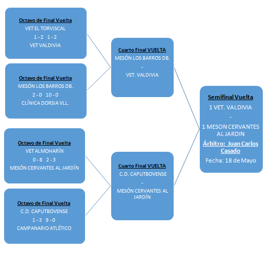 Se sanciona con UN partido a D. Iván Guerrero Parejo del M. Cervantes Lizarran VVA, a D. Eduardo Jurado Mangas del Veteranos Valdivia y a D. Ruben Mañoso Bernabé del C.D. Veteranos Gargáligas.