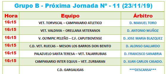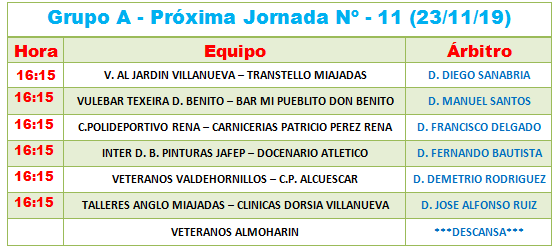 - Se sanciona con UN partido a D. David Calvo Redondo del Campanario Interser, a D. Juan Pedro Ponce Escudero del Campanario Atlético y a D. José Blanco Toledano del C. F. Caputbovense, por acumulación de amonestaciones.