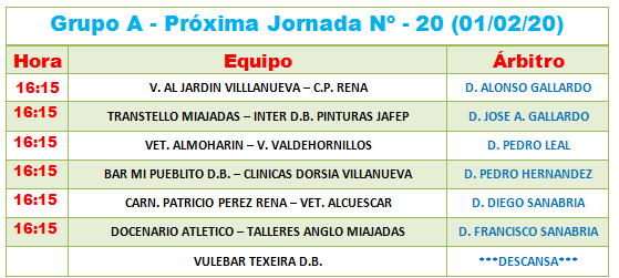 Se sanciona con UN partido a D. José Antonio Gómez Rodríguez, a D. David López Paredes ambos jugadores del Clínicas Dorsia Villanueva y a D. Juan Manuel Rodríguez Rueda del C. D. Vet. Ruecas. Todos por acumulación de amonestaciones.