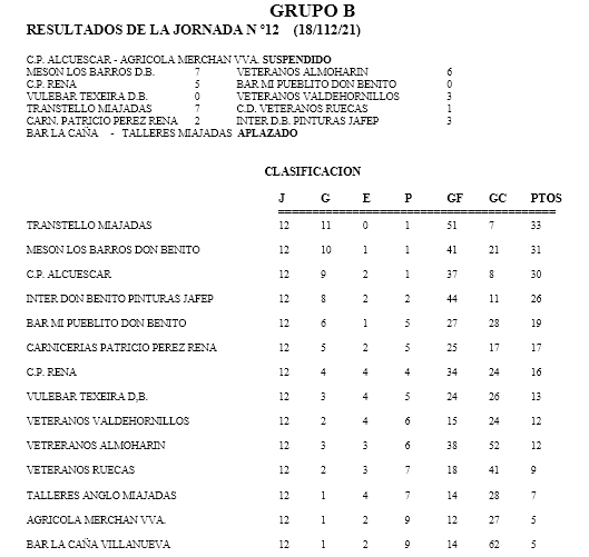 ** El partido C.P. ALCUESCAR – AGRICOLA MERCHAN VVA que se suspendió en el minuto 30 al quedarse el Agricola Merchan Vva. con 6 jugadores se da por finalizado por 5-0 por el artículo 7.f del reglamento de