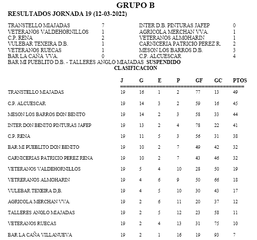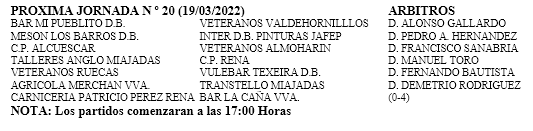Se sanciona al equipo Talleres Anglo Miajadas, con la pérdida de su partido con el equipo Bar Mi Pueblito Don Benito por 5-0 por incomparecencia. Además por el artículo 7.C de los estatutos debe abonar la totalidad del recibo arbitral (60 euros), más 50 euros de multa, en el plazo máximo de 15 días, de no hacerlo así como indica el apartado 7.D, no se designará árbitro para sus partidos, perdiendo todos los que debiera jugar. Se recuerda que 2 incomparecencias en una misma temporada, así como indica el apartado 7.G de los estatutos supone la expulsión inmediata de la AFAS.